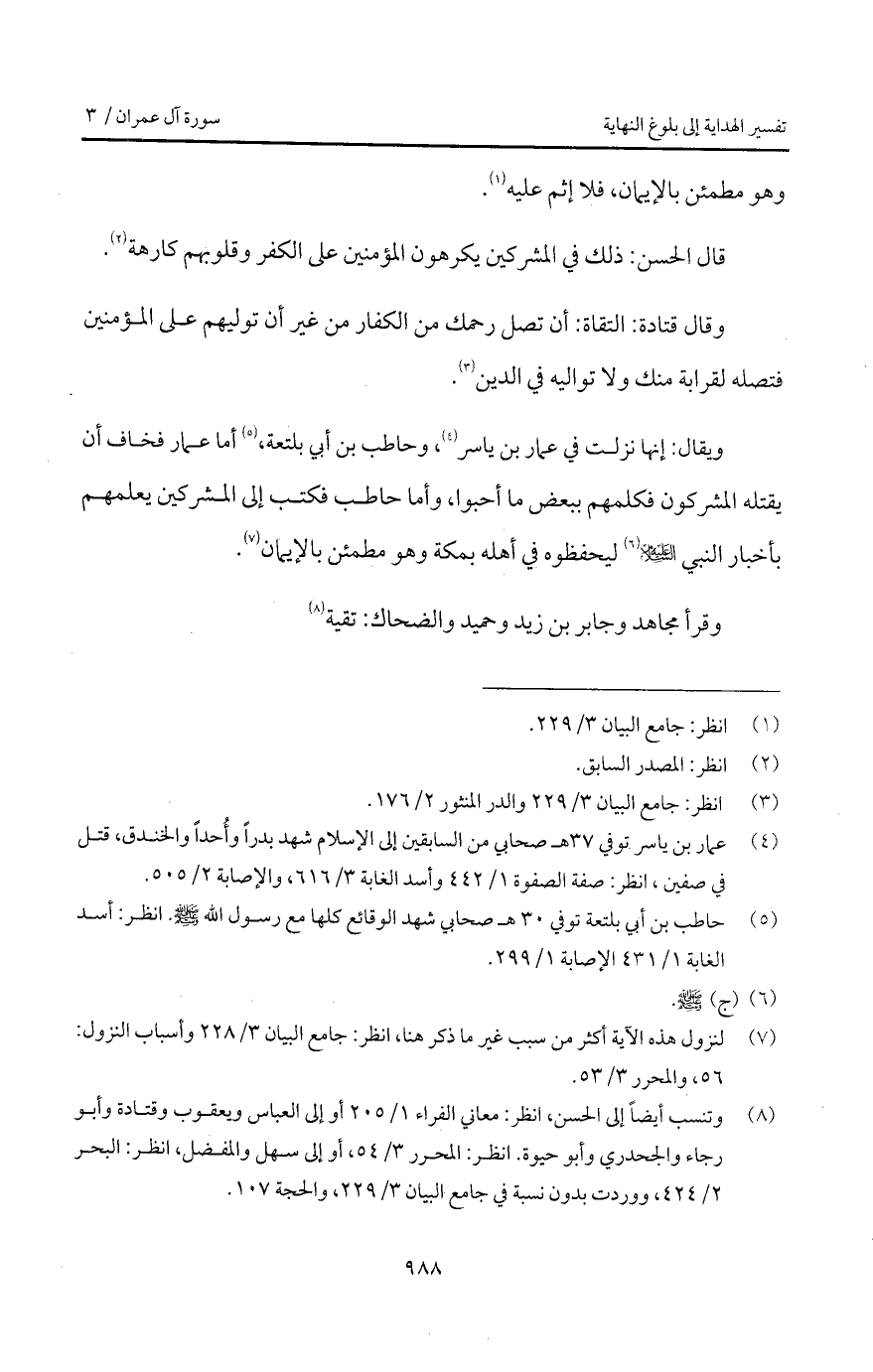 ويقال: إنها نزلت في عمار بن ياسر، وحاطب بن أبي بلتعة، أما عمار فخاف أن يقتله المشركون فكلمهم ببعض ما أحبوا، وأما حاطب فكتب إلى المشركين يعلمهم بأخبار النبي عليه السلام ليحفظوه في أهله بمكة وهو مطمئن بالإيمان.