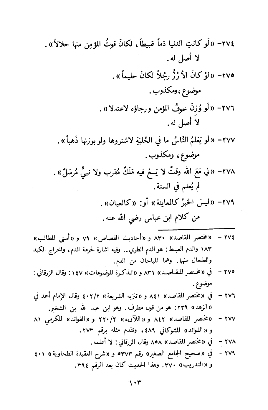 281 - " لَيْسَ لِلْمُؤمنِ رَاحَة دون لِقَاء ربه ". لم يقلهُ النَّبِي صلى الله عَلَيْهِ وَسلم، بل هُوَ قَول وهب بن مُنَبّه.
