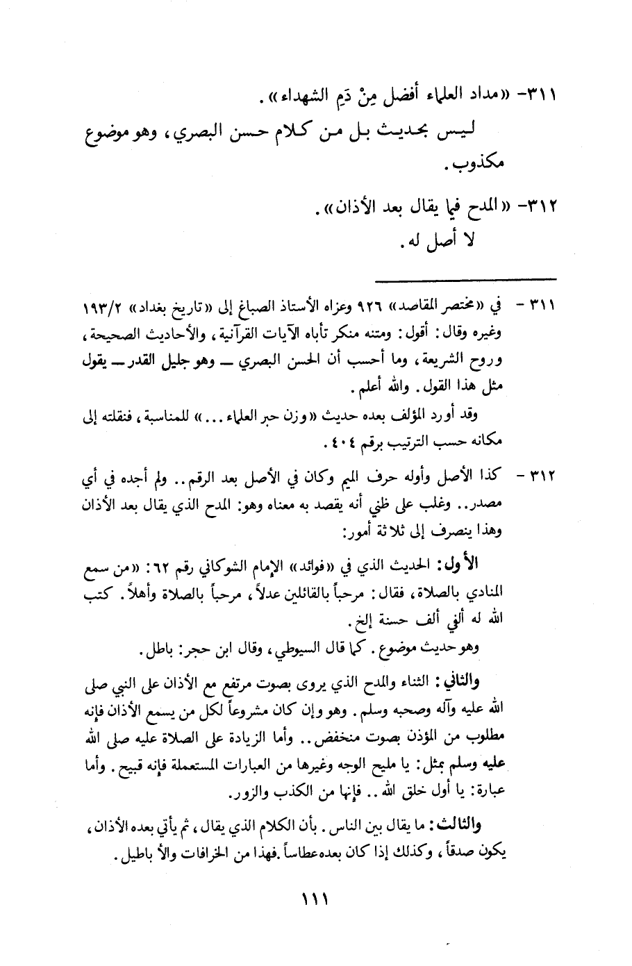 316 - " مسح الْعَينَيْنِ بباطن أنملتي السبابتين بعد تقبيلهما عِنْد قَول الْمُؤَذّن: أشهد أَن مُحَمَّدًا رَسُول الله ". لَا يَصح، وَلَا عَن الْخضر.