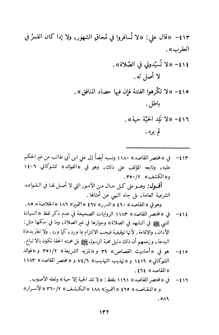418 - " لَا سيف إِلَّا ذُو القفار، وَلَا فَتى إِلَّا عَليّ ". رُوِيَ أَن ملكا نَادَى [بِهِ يَوْم بدر] . وَلم يرد.