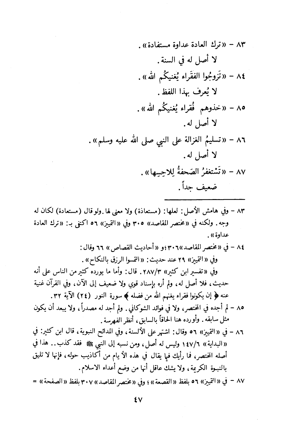 89 - " التَّكْبِير جزم ". لَا أصل لَهُ فِي السّنة، وَالْمرَاد من الْجَزْم،: عدم التمطيط والتردد.