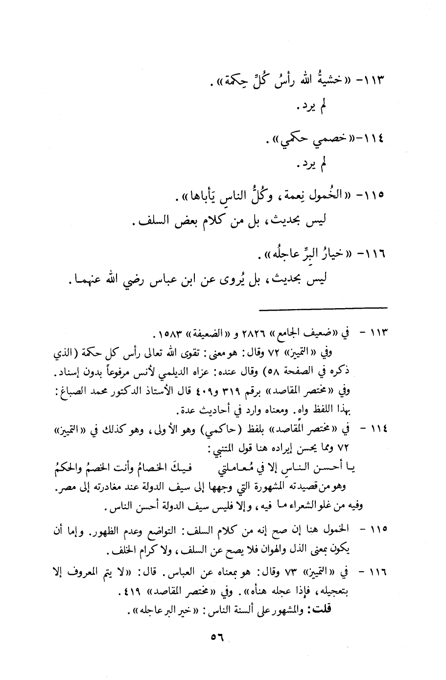 117 - " خير الْأَسْمَاء مَا حمد وَمَا عبد ". لم يعرف فِي السّنة ... . خير الْعِبَادَة.