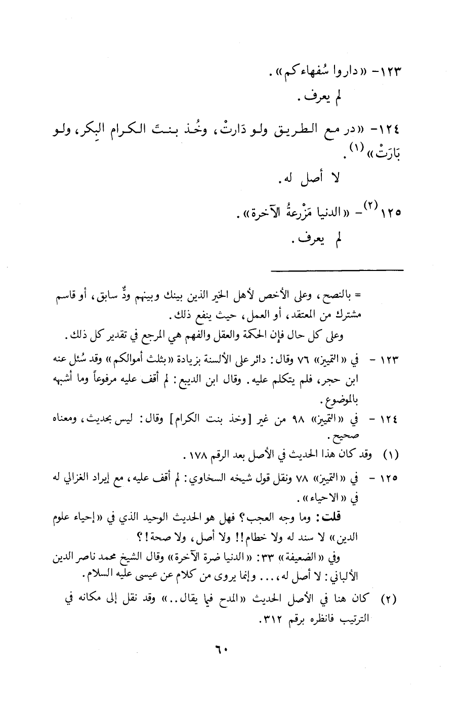126 - " دَوَاء الْعين ترك مَسهَا ". يرْوى من قَول أبي سعيد [الْخُدْرِيّ] ، وَلم يقلهُ النَّبِي صلى الله عَلَيْهِ وَسلم.