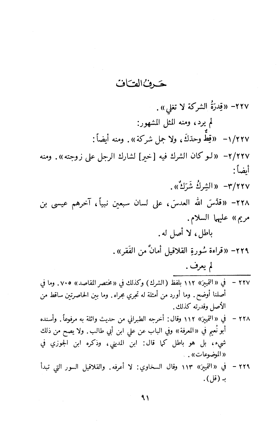 230 - " قصّ الأظافر ". لم يرد فِي كيفيته، وَلَا فِي تعْيين يَوْم لَهُ، عَن النَّبِي شَيْء، وَمَا يعزى لعَلي، والحافظ ابْن حجر من النّظم، فَبَاطِل ومكذوب عَلَيْهِمَا.