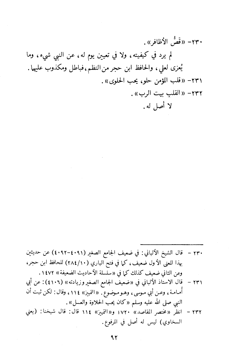 234 - " كَانَ النَّبِي صلى الله عَلَيْهِ وَسلم إِذا خَافَ أَن ينسى حَاجَة ربط فِي أُصْبُعه خيطاً ليذكرها ". بَاطِل، ومنكر، وَلَا يَصح اصلاً.