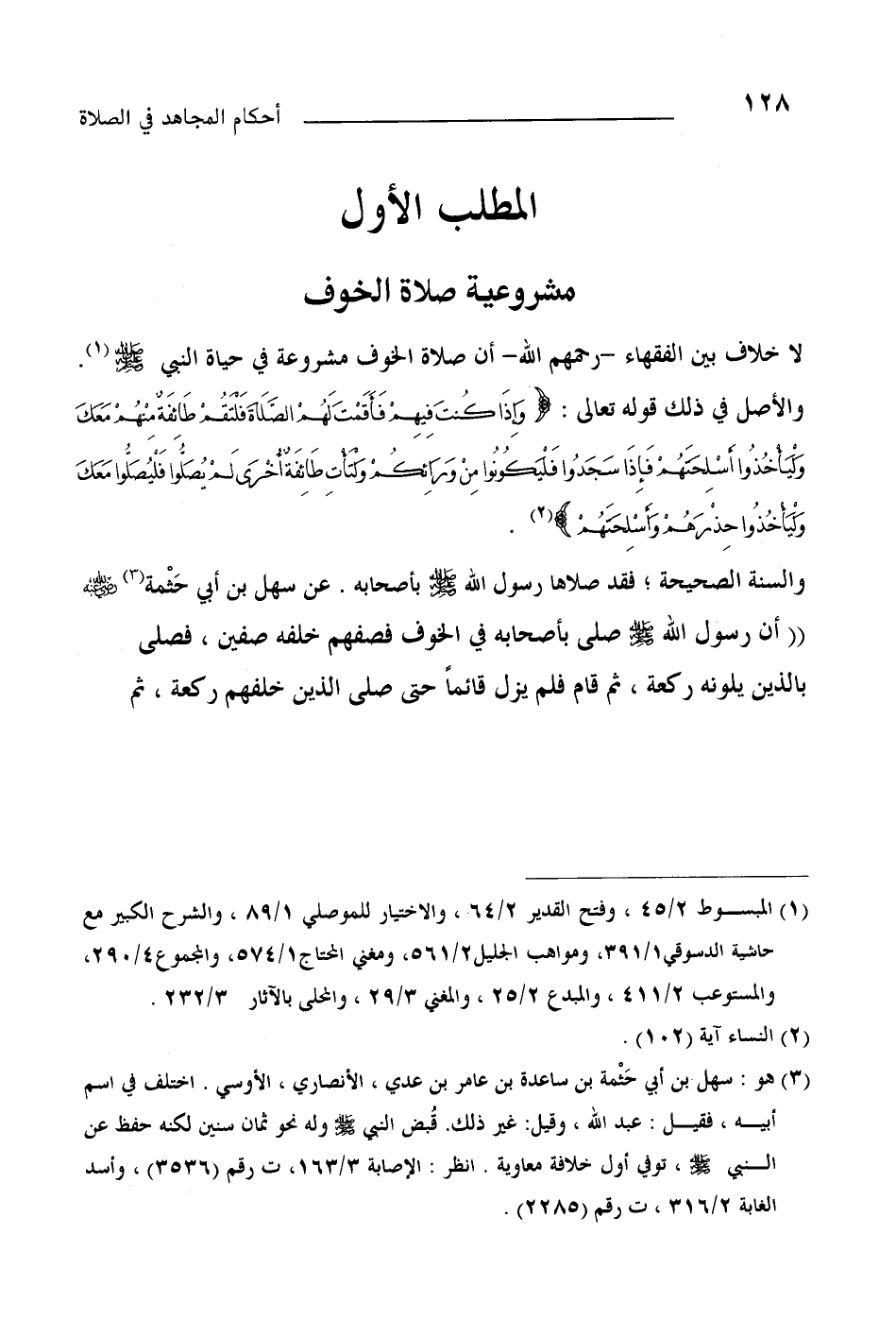 (¬1) المبسوط (2/45) وفتح القدير (2/64) والاختيار للموصلي (1/89) والشرح الكبير مع حاشية الدسوقي (1/391) ومواهب الجليل (2/561) ومغني المحتاج (1/574) والمجموع (4/290) والمستوعب (2/411) والمبدع (2/25) والمغني (3/29) والمحلى بالآثار (3/232) .