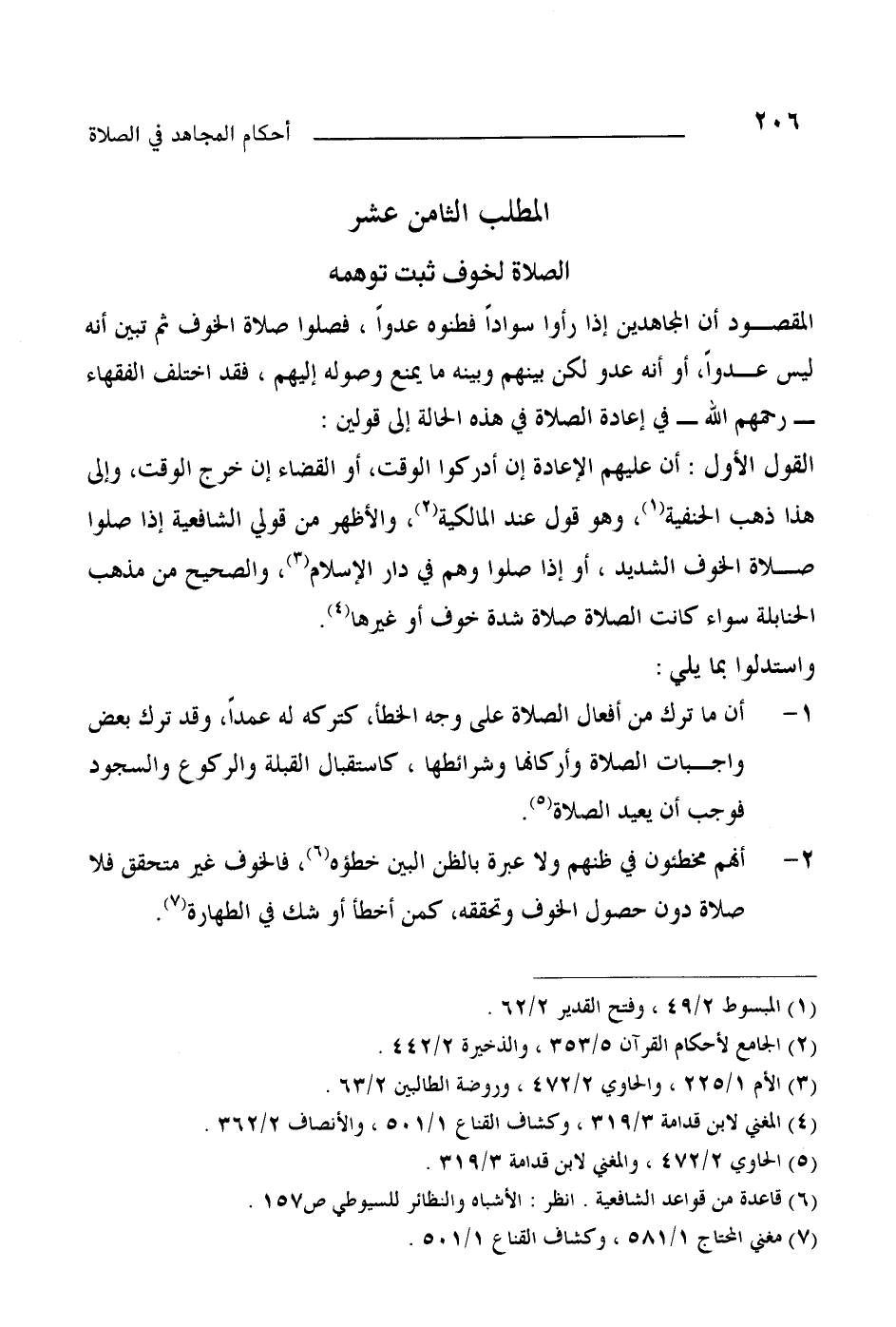 2- أنهم مخطئون في ظنهم ولا عبرة بالظن البين خطؤه (¬6) فالخوف غير متحقق فلا صلاة دون حصول الخوف وتحققه كمن أخطأ أو شك في الطهارة (¬7) .