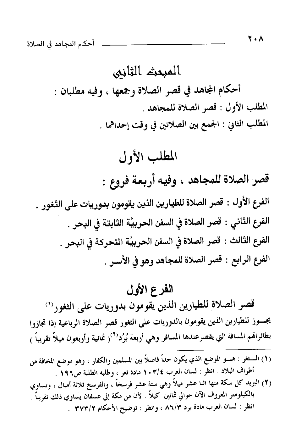أحكام المجاهد في قصر الصلاة وجمعها، وفيه مطلبان: