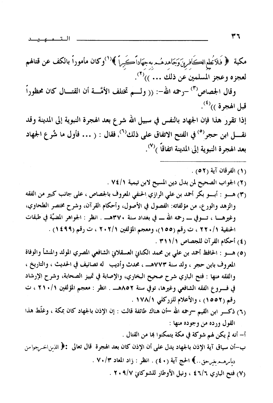 (¬5) ذكر ابن القيم رحمه الله أن هناك طائفة قالت إن الإذن بالجهاد كان بمكة وغلط هذا القول ورده من وجوه منها: