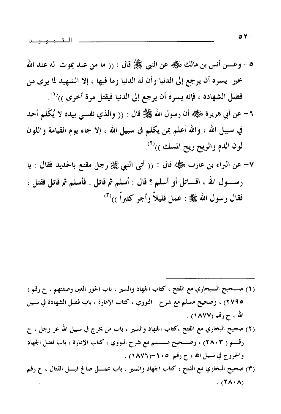 (¬1) صحيح البخاري مع الفتح، كتاب الجهاد والسير باب الحور العين وصفتها ح رقم ... (2795) وصحيح مسلم مع شرح النووي، كتاب الإمارة باب فضل الشهادة في سبيل الله ح رقم (1877) .