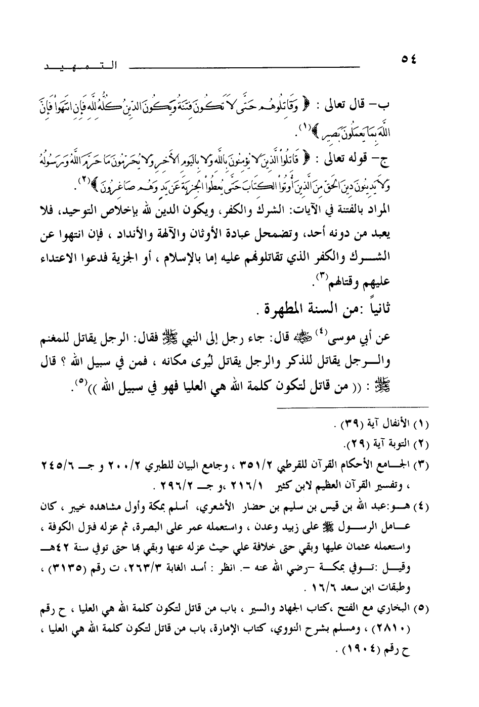 (¬3) البخاري مع الفتح، كتاب الجهاد والسير، باب من قاتل لتكون كلمة الله هي العليا، ح رقم (2810) ومسلم بشرح النووي، كتاب الإمارة باب من قاتل لتكون كلمة الله هي العليا ح رقم (1904) .