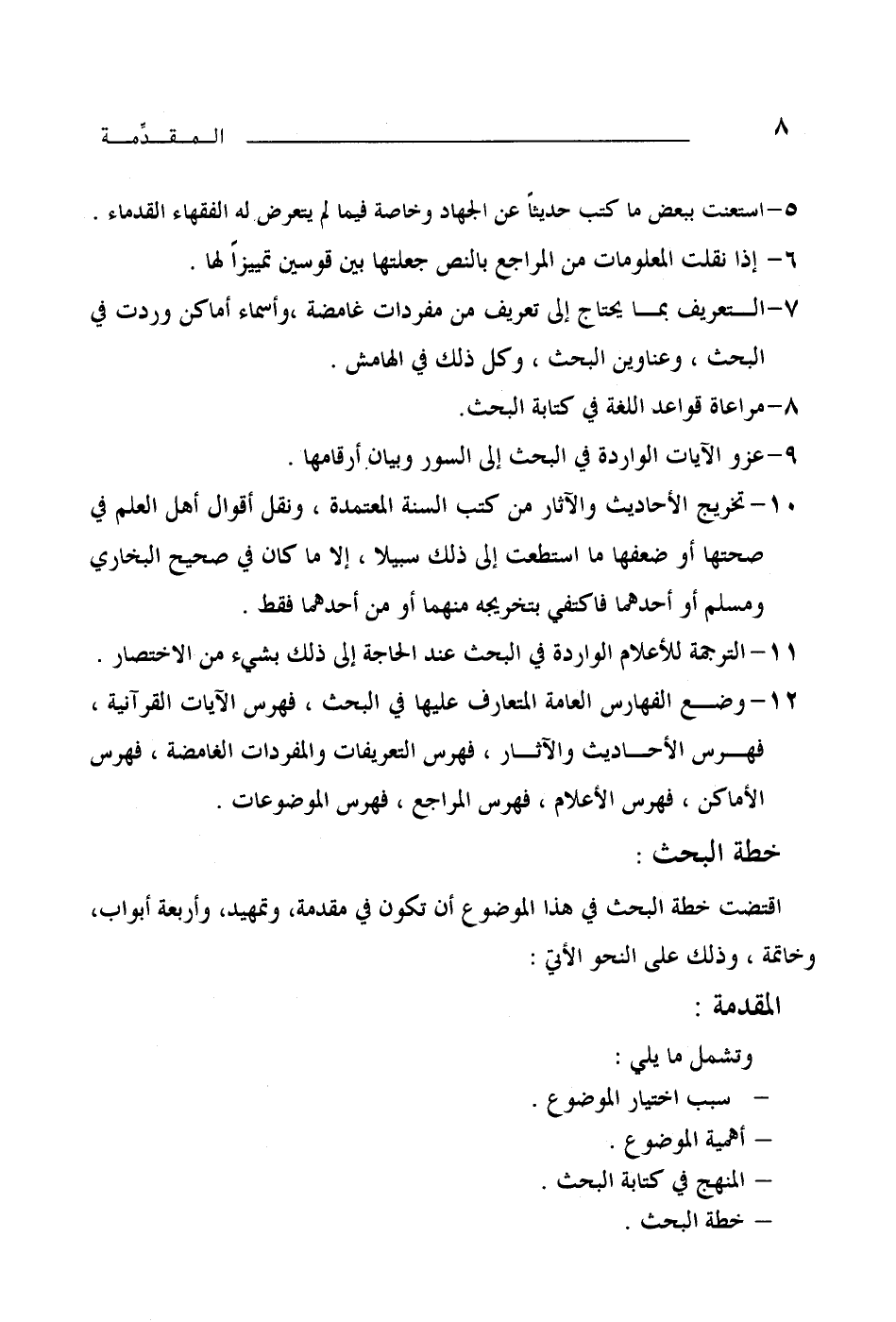 5- استعنت ببعض ما كتب حديثا عن الجهاد وخاصة فيما لم يتعرض له الفقهاء القدماء.