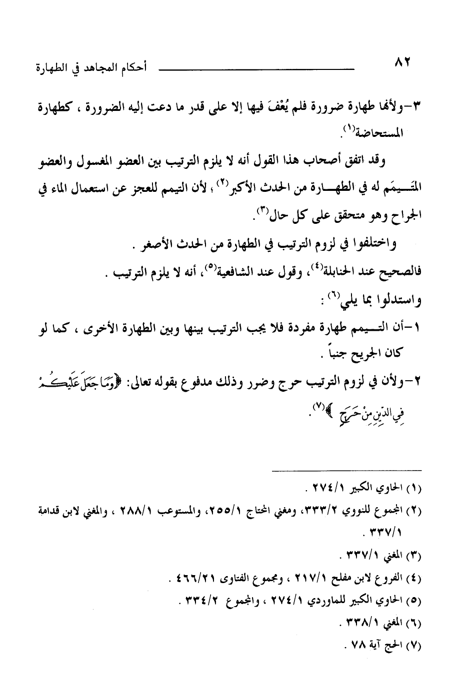 2- ولأن في لزوم الترتيب حرج وضرر وذلك مدفوع بقوله تعالى: ... {وَمَا جَعَلَ عَلَيْكُمْ فِي الدِّينِ مِنْ حَرَجٍ} [الحج: 78] .