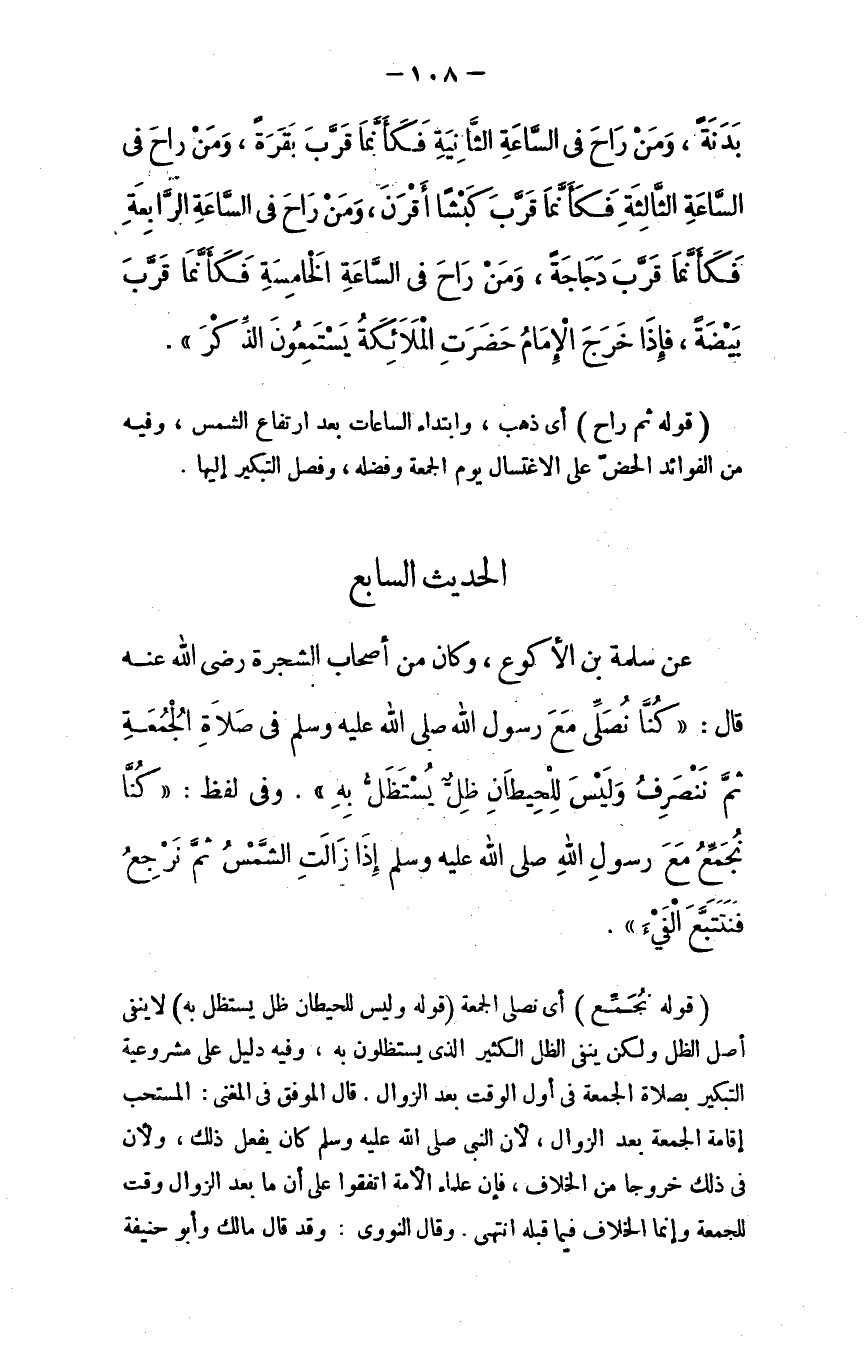 عن سلمة بن الأكوع - وكان من أصحاب الشجرة، رضي الله عنه - قال: "كنَّا نصلي مع رسول الله - صلى الله عليه وسلم - في صلاة الجمعة ثم ننصرف وليس للحيطان ظل يستظل به".