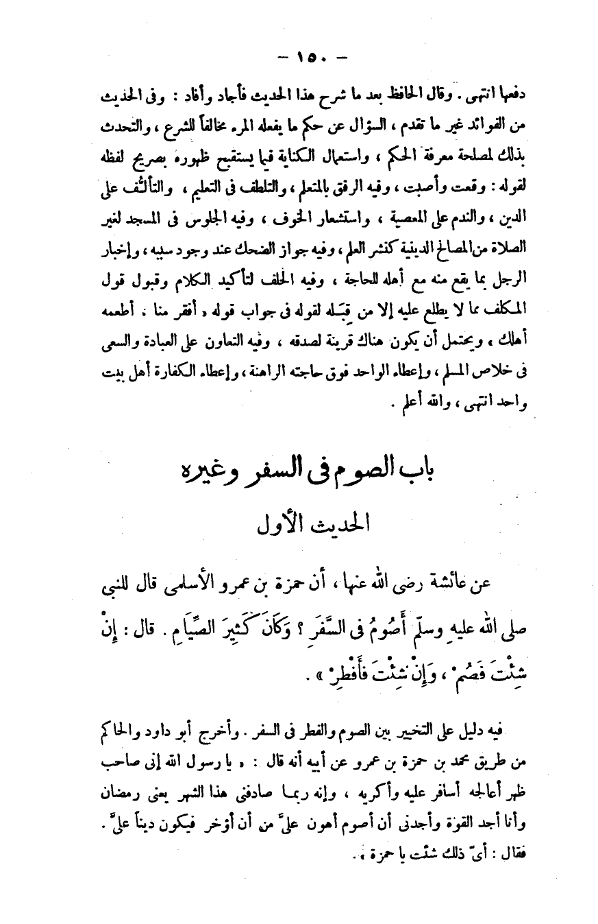عن عائشة - رضي الله عنها - أن حمزة بن عمرو الأسلمي قال للنبي - صلى الله عليه وسلم -: أصوم في السفر؟ وكان كثير الصيام، قال: ((إن شئت فصم، وإن شئت فأفطر)) .