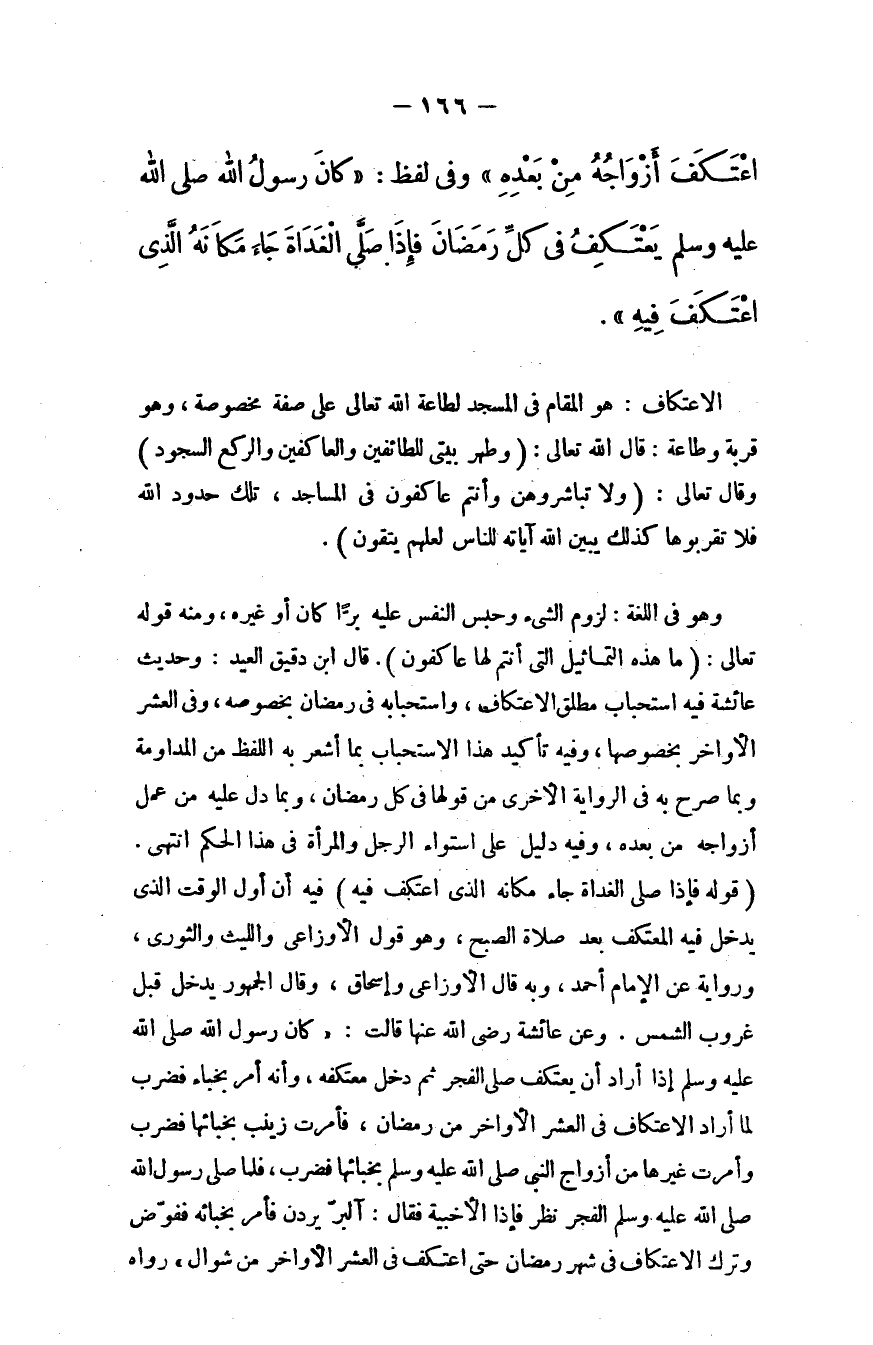 (الاعتكاف) : هو المقام في المسجد لطاعة الله - تعالى - على صفة مخصوصة، وهو قربة وطاعة؛ قال الله - تعالى -: {وَطَهِّرْ بَيْتِيَ لِلطَّائِفِينَ وَالْقَائِمِينَ وَالرُّكَّعِ السُّجُودِ} [الحج: 26] ، وقال - تعالى -: {وَلاَ تُبَاشِرُوهُنَّ وَأَنْتُمْ عَاكِفُونَ فِي الْمَسَاجِدِ تِلْكَ حُدُودُ اللَّهِ فَلاَ تَقْرَبُوهَا كَذَلِكَ يُبَيِّنُ اللَّهُ آيَاتِهِ لِلنَّاسِ لَعَلَّهُمْ يَتَّقُونَ} [البقرة: 187] .