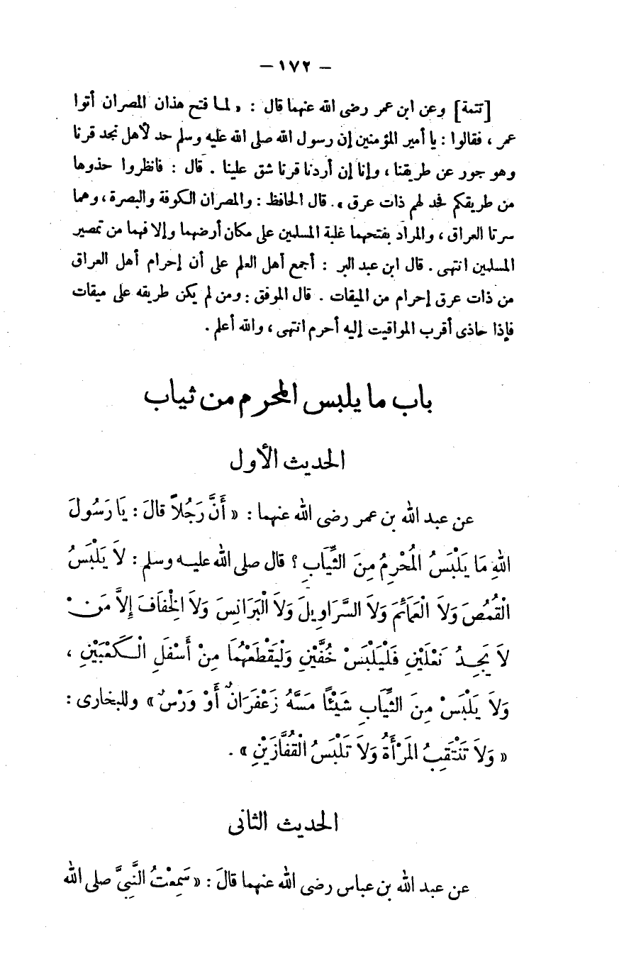 وعن ابن عمر - رضي الله عنهما - قال: "لما فُتِح هذان المصران أتوا عمر، فقالوا: يا أمير المؤمنين، إن رسول الله - صلى الله عليه وسلم - حدَّ لأهل نجد قرنًا وهو جور عن