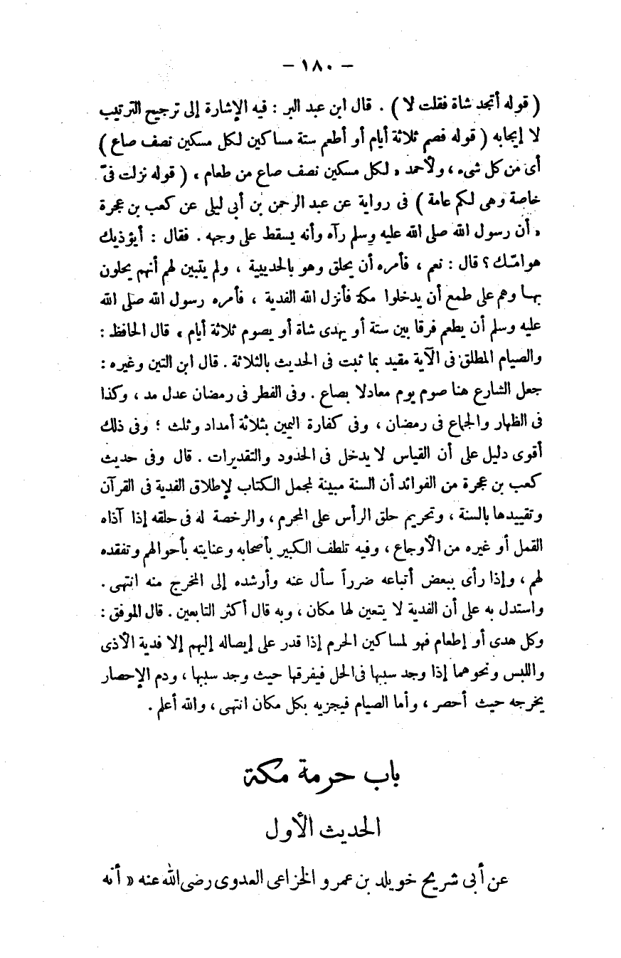قال: وفي حديث كعب بن عجرة من الفوائد أن السنة مبيِّنة لمجمل الكتاب لإطلاق الفدية في القرآن وتقييدها بالسنَّة، وتحريم حلق الرأس على المحرم، والرخصة له في حلقه إذا آذَاه القمل أو غيره من الأوجاع، وفيه تلطُّف الكبير