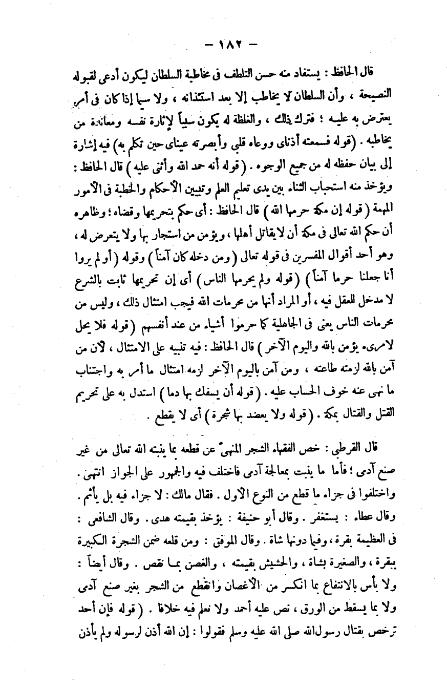 قال القرطبي: خصَّ الفقهاء الشجر المنهي عن قطعه بما ينبته الله - تعالى - من غير صنع آدمي؛ فأمَّا ما ينبت بمعالجة آدمي فاختلف فيه والجمهور على الجواز، انتهى.