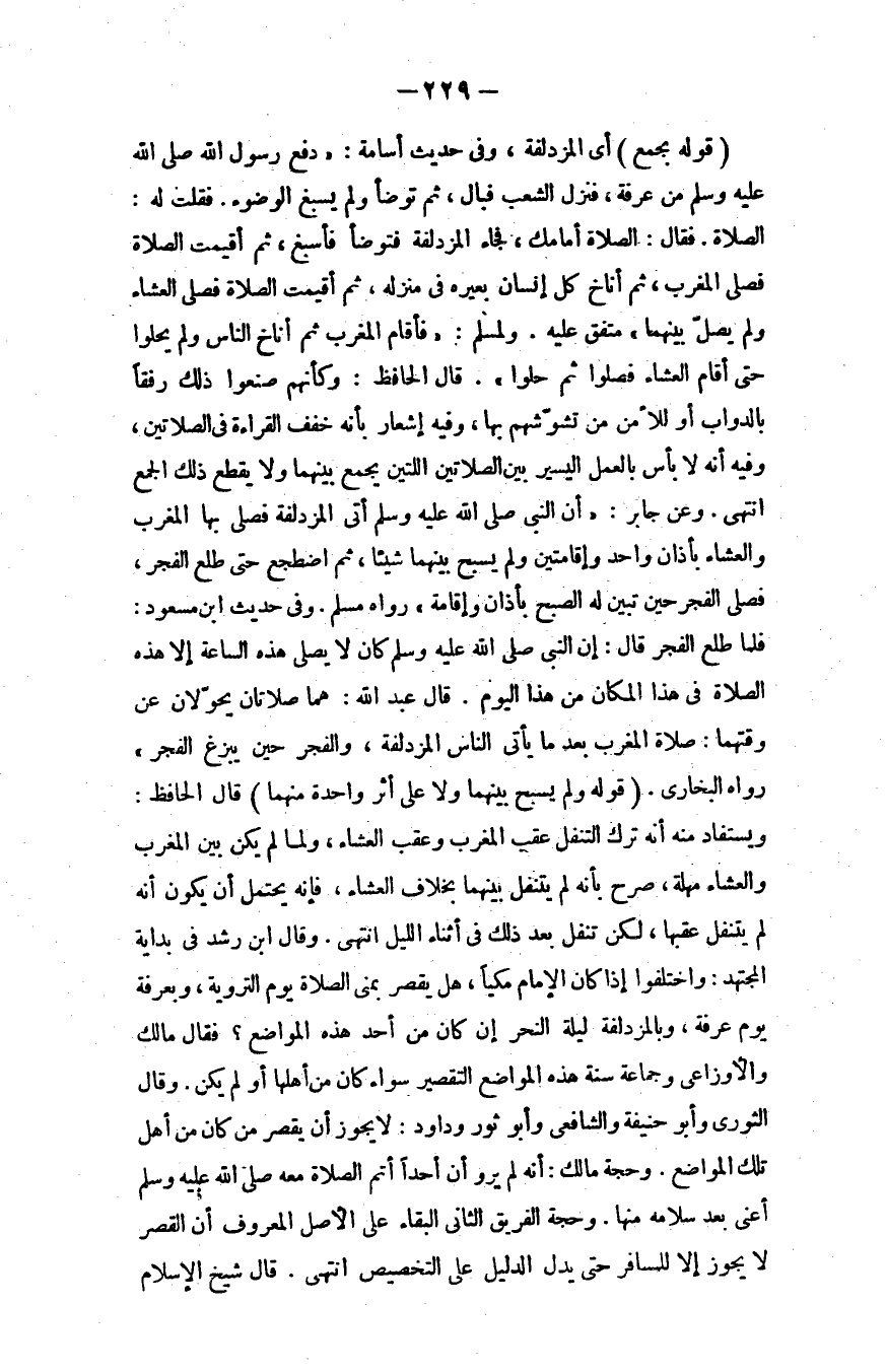 وفي حديث ابن مسعود: فلمَّا طلع الفجر قال: "إن النبي - صلى الله عليه وسلم - كان لا يصلي هذه الساعة، إلا هذه الصلاة في هذا المكان من هذا اليوم، قال عبد الله: هما صلاتان يحولان عن وقتهما: صلاة المغرب بعدما يأتي الناس المزدلفة، والفجر حين يبزغ الفجر"؛ رواه البخاري.