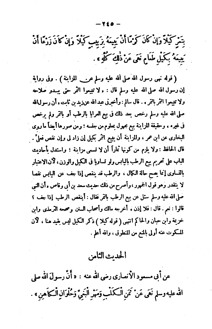 قال سالم: وأخبرني عبد الله عن زيد بن ثابت أن رسول الله - صلى الله عليه وسلم - رخَّص بعد ذلك في بيع العرايا بالرطب أو بالتمر، ولم يرخص في غيره)) ، وحقيقة المزابنة بيع مجهول بمعلوم من جنسه، ومن صورها أيضًا ما روى البخاري عن ابن عمر، والمزابنة أن يبيع الثمر بكيل إن زاد لي وإن نقص فعليَّ.