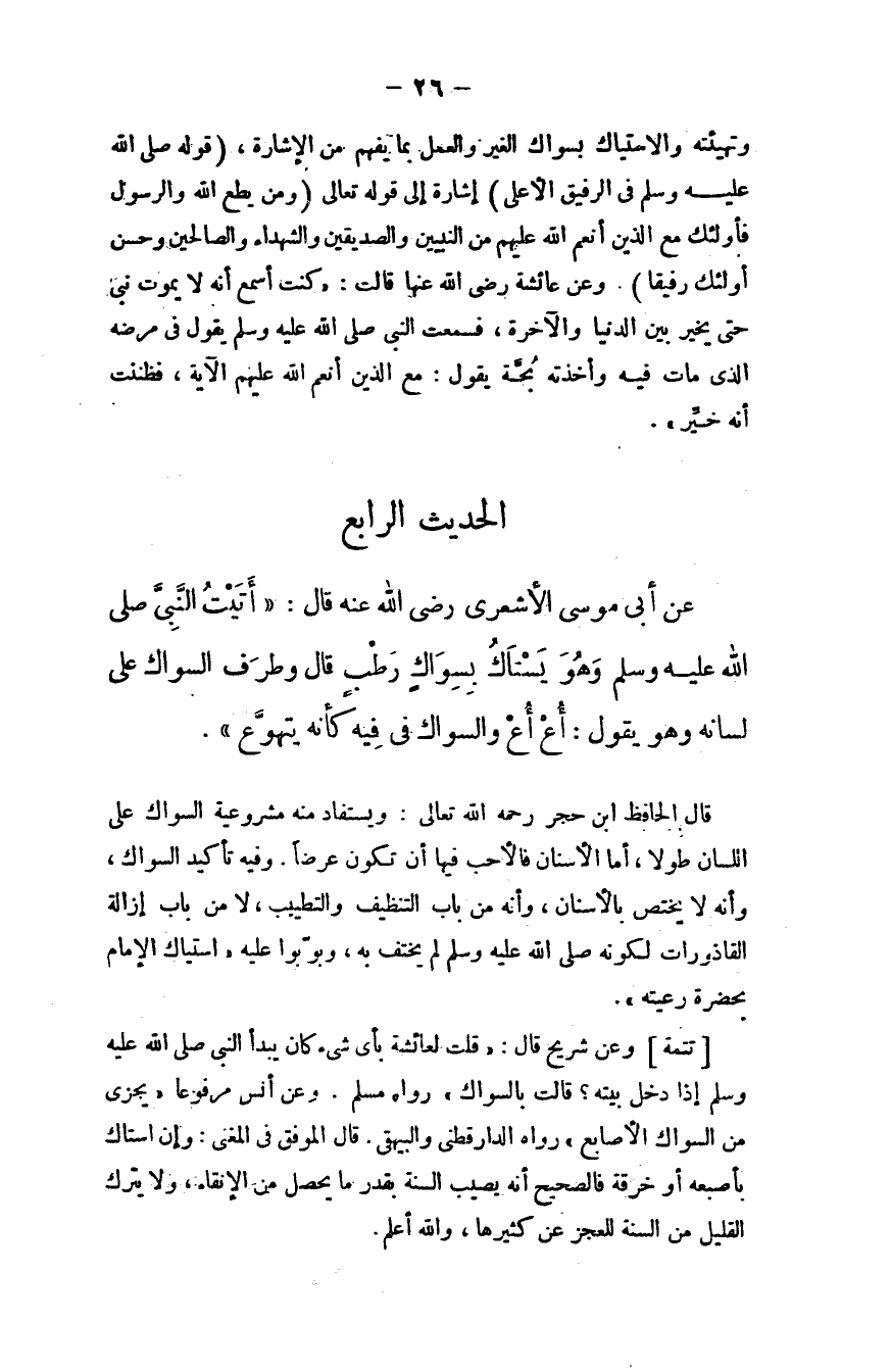 وتهيئته، والاستياك بسواك الغير، والعمل بما يُفهَم من الإشارة.