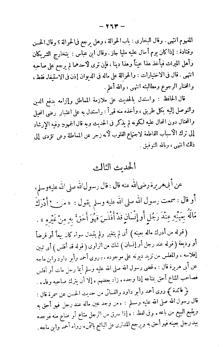 عن أبي هريرة - رضي الله عنه - قال: قال رسول الله - صلى الله عليه وسلم - أو قال: سمعت رسول الله، - صلى الله عليه وسلم - يقول: ((مَن أدرك ماله بعينه عند رجلٍ أو إنسانٍ قد أفلس فهو أحقُّ به من غيره)) .