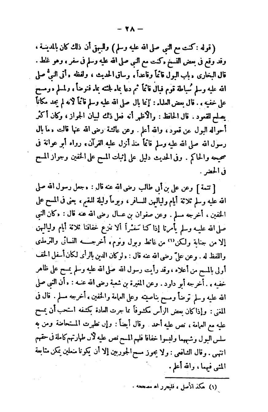 وعن صفوان بن عسال - رضي الله عنه - قال: "كان النبي - صلى الله عليه وسلم - يأمرنا إذا كنَّا سَفْرًا ألا ننزع خفافنا ثلاثة أيام ولياليهن إلا من جنابة، ولكن من غائط وبول ونوم؛ أخرجه النسائي والترمذي واللفظ له.