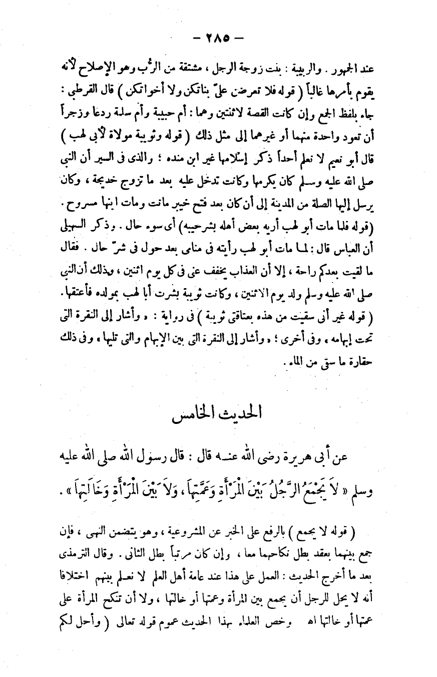 عن أبي هريرة - رضي الله عنه - قال: قال رسول الله - صلى الله عليه وسلم -: ((لا يجمع الرجل بين المرأة وعمَّتها، ولا بين المرأة وخالتها)) .