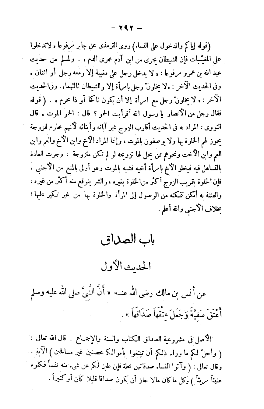 عن أنس بن مالك - رضي الله عنه -: "أن النبي - صلى الله عليه وسلم - أعتق صفية وجعل عتقها صداقها".