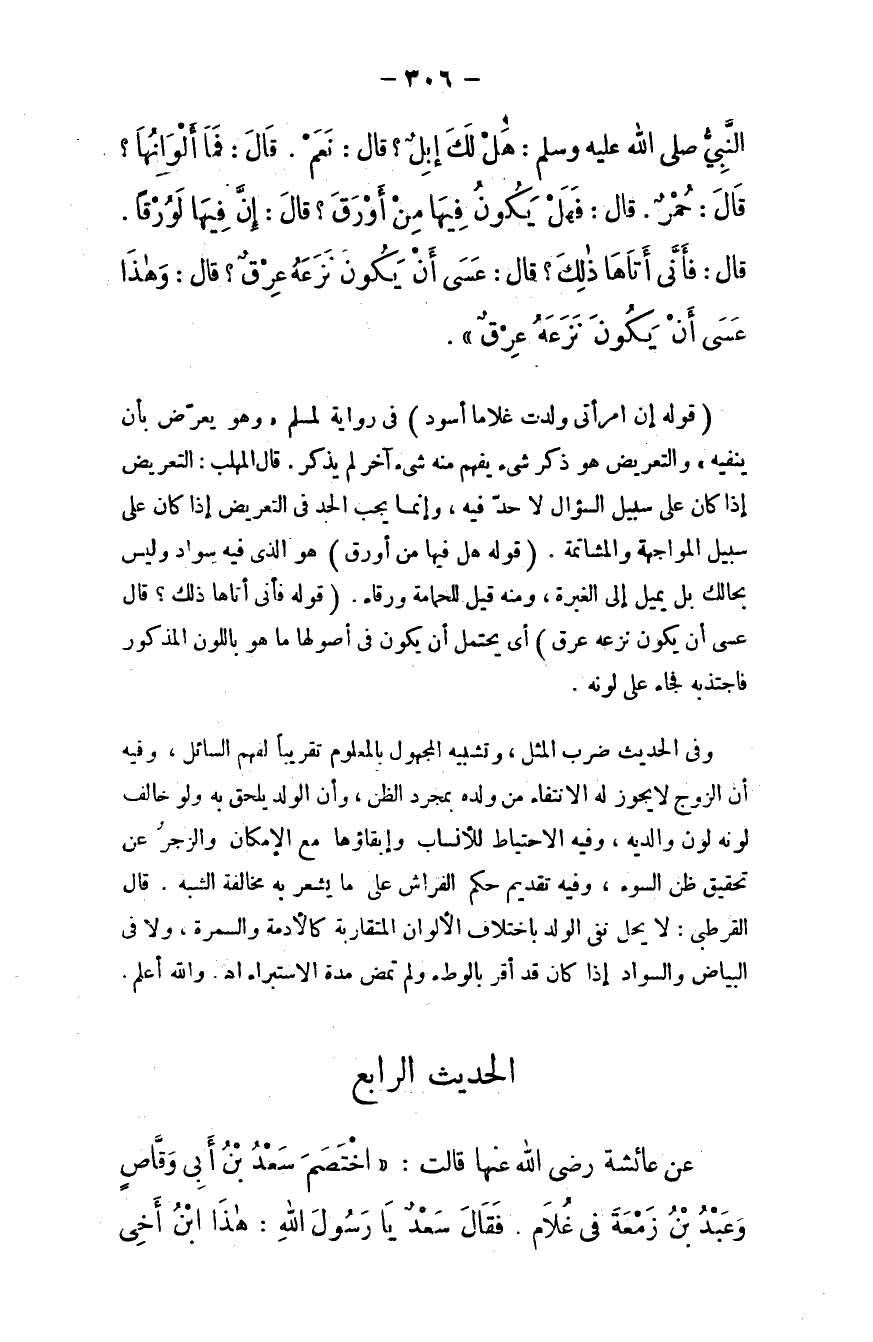 قال: إن فيها لَوُرْقًا، قال: ((فأنَّى أتاها ذلك؟)) ، قال: عسى أن يكون نزعه عرق، قال: ((وهذا عسى أن يكون نزعه عرق)) .