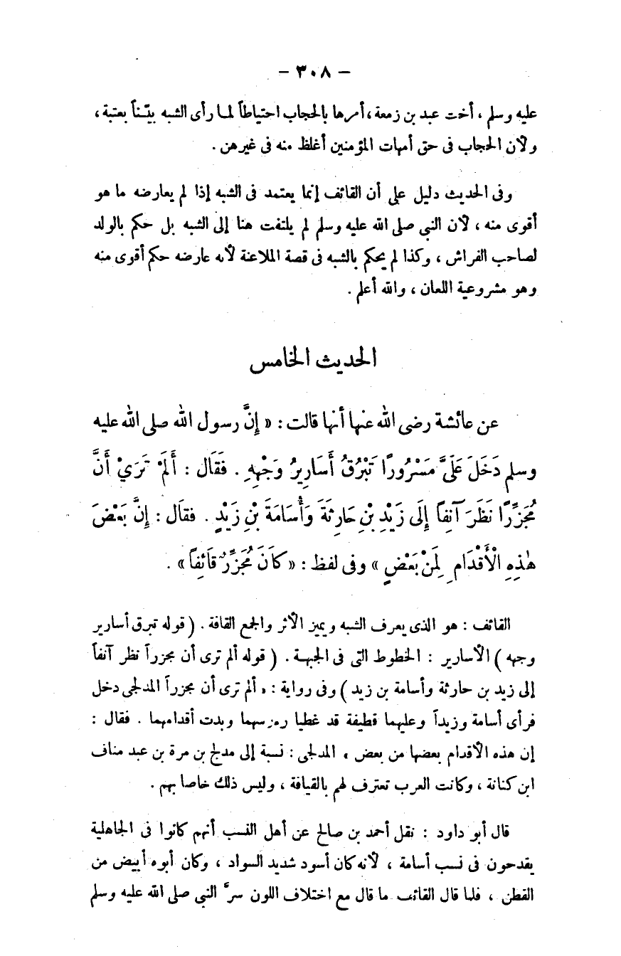 عن عائشة - رضي الله عنها - أنها قالت: "إن رسول الله - صلى الله عليه وسلم - دخل عليَّ مسرورًا تبرق أسارير وجهه، فقال: ((ألم تري أن مجزرًا نظر آنفًا إلى زيد بن حارثة وأسامة بن زيد. فقال: إن بعض هذه الأقدام لمن بعض)) ، وفي لفظ: ((كان مجزر قائفًا)) .