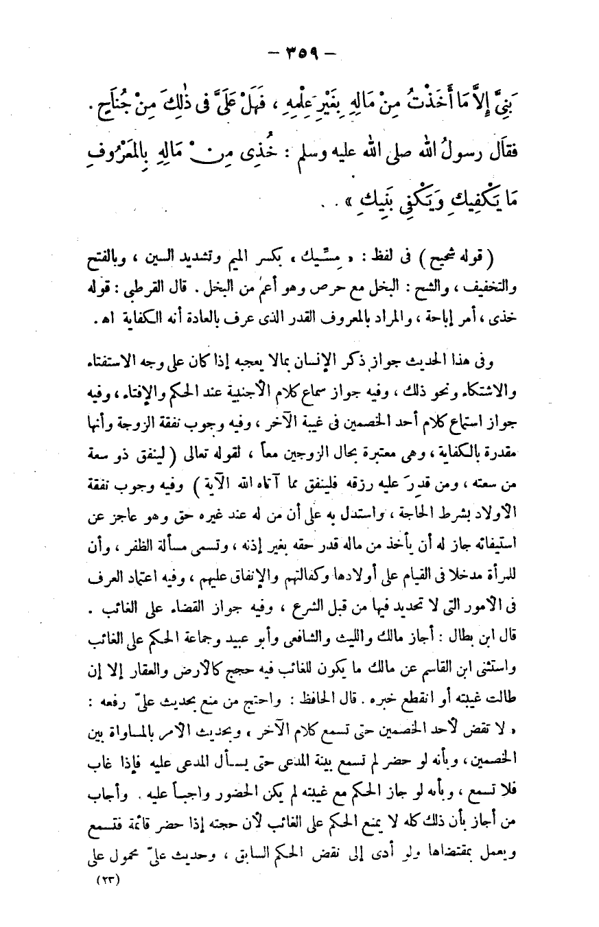 بنيَّ إلا ما أخذت من ماله بغير علمه، فهل عليَّ في ذلك من جناح؟ فقال رسول الله - صلى الله عليه وسلم -: ((خذي من ماله بالمعروف ما يكفيك ويكفِي بنيك)) .