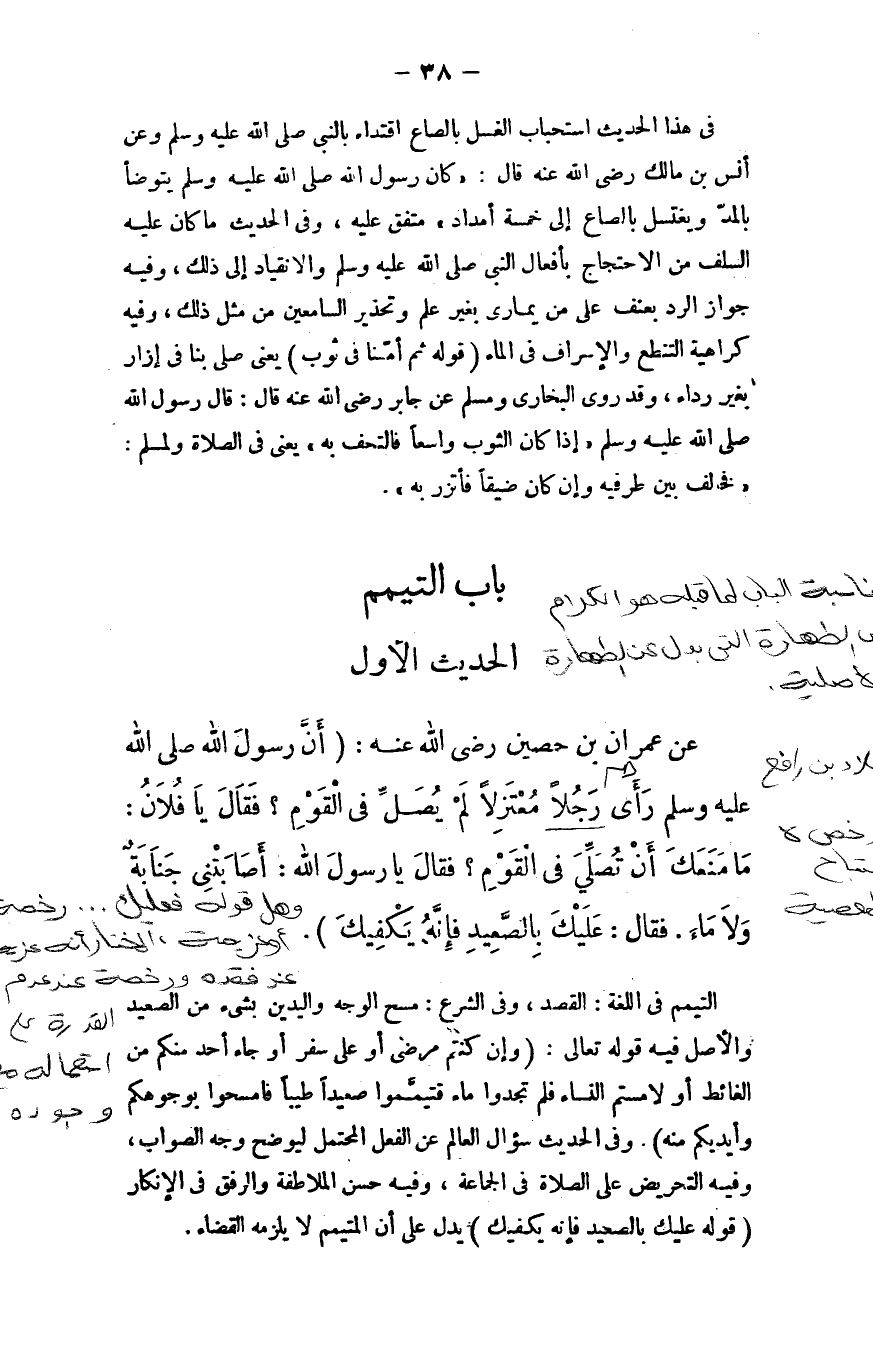 عن عمران بن حصين - رضي الله عنه -: أن رسول الله - صلى الله عليه وسلم - رأى رجلاً معتزلاً لم يصلِّ في القوم، فقال: ((يا فلان، ما منعك أن تصلي في القوم؟)) ، فقال: يا رسول الله، أصابتني جنابة ولا ماء، فقال: ((عليك بالصعيد فإنه يكفيك)) .