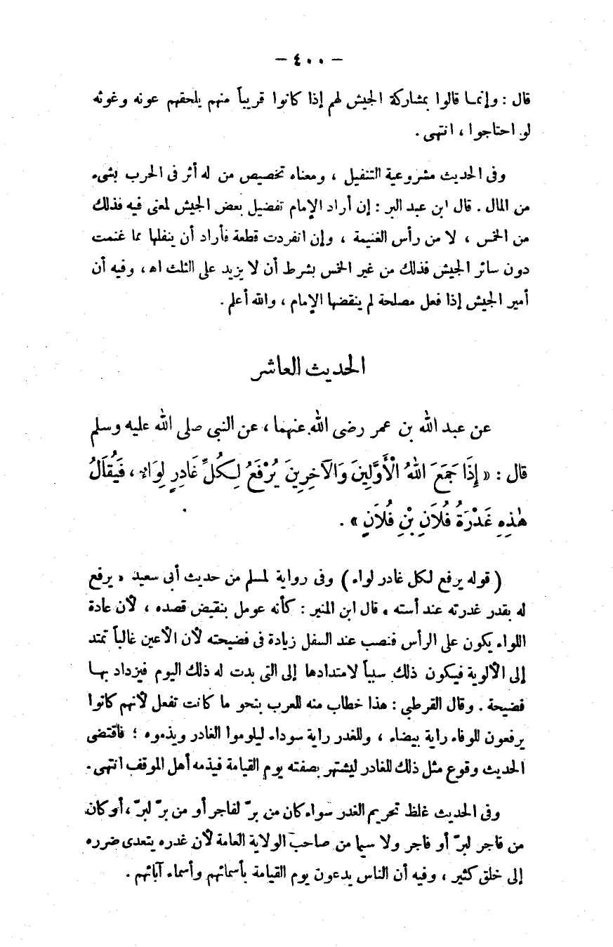 عن عبد الله بن عمر - رضي الله عنهما - عن النبي - صلى الله عليه وسلم - قال: ((إذا جمع الله الأوَّلين والآخِرين يرفع لكلِّ غادرٍ لواء، فيُقال: هذه غدرة فلان بن فلان)) .
