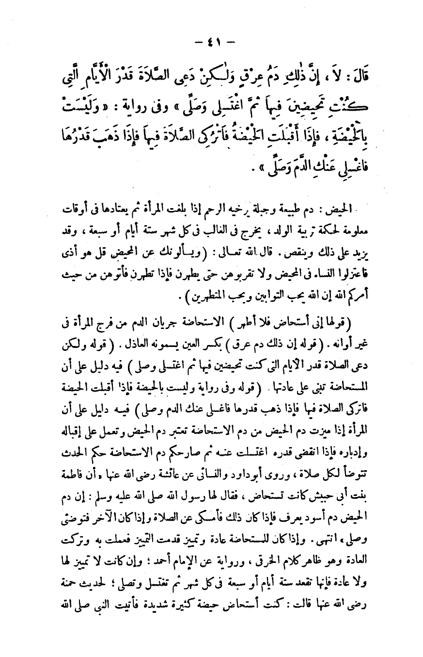 قال: ((لا، إن ذلك دم عرق ولكن دعي الصلاة قدر الأيام التي كنت تحيضين فيها ثم اغتسلي وصلِّي)) .