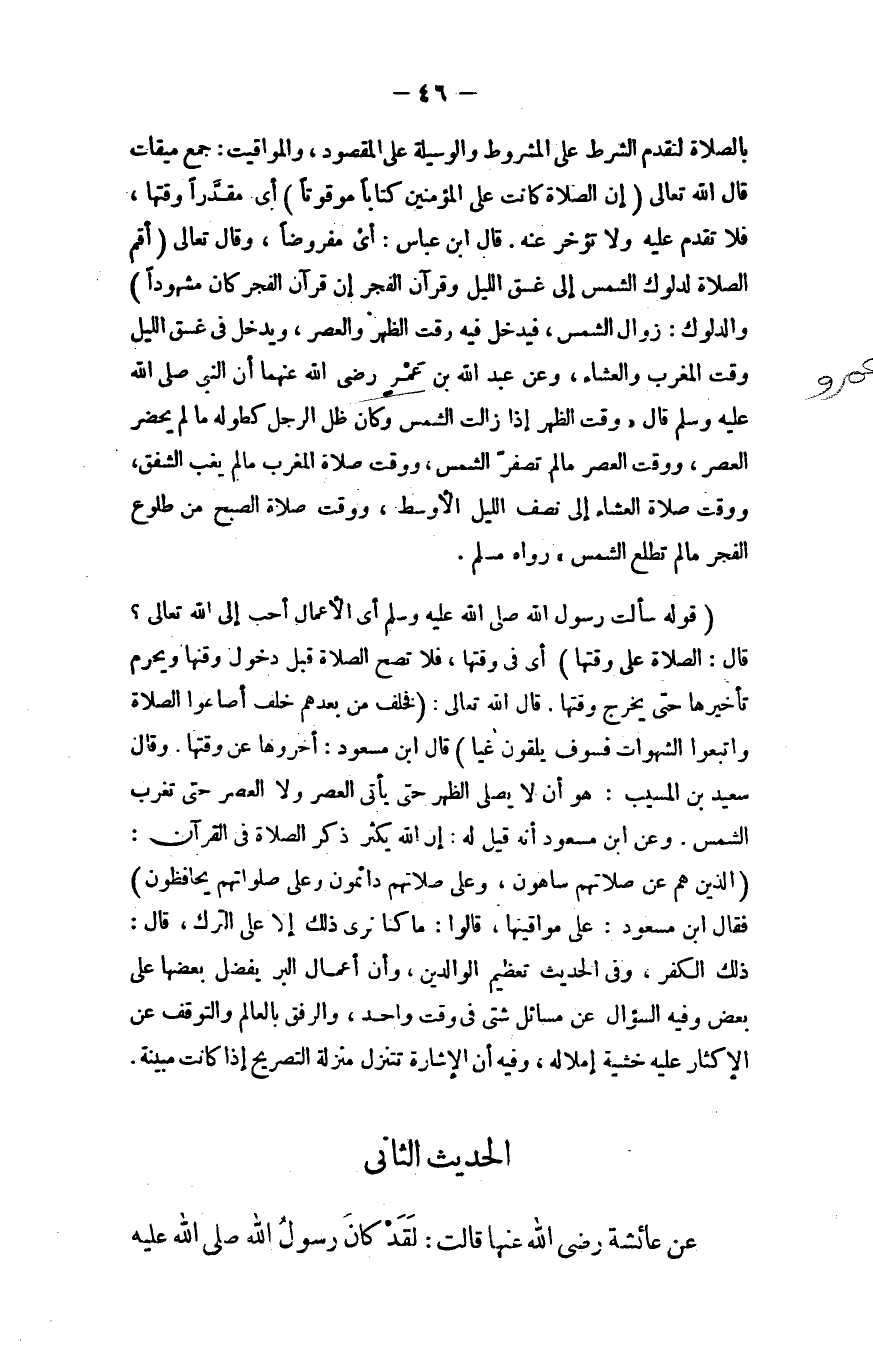 فقال بن مسعود: على مواقيتها، قالوا: ما كنَّا نرى ذلك إلا على الترك، قال: ذلك الكفر.