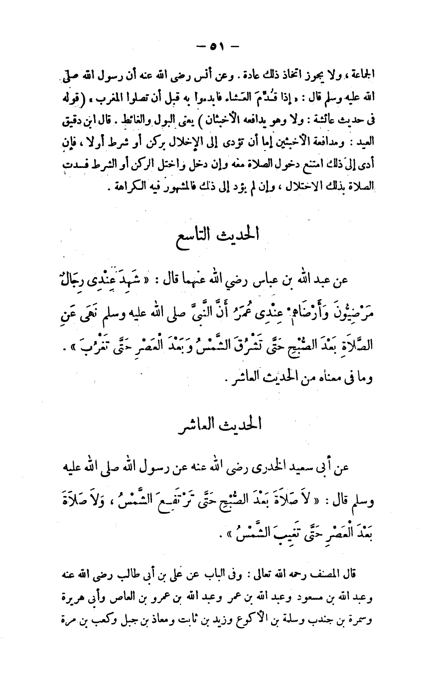 عن عبد الله بن عباس - رضي الله عنهما - قال: "شهد عندي رجال مرضيُّون وأرضاهم عندي عمر، أن النبي - صلى الله عليه وسلم - نهى عن الصلاة بعد الصبح حتى تشرق الشمس وبعد العصر حتى تغرب".