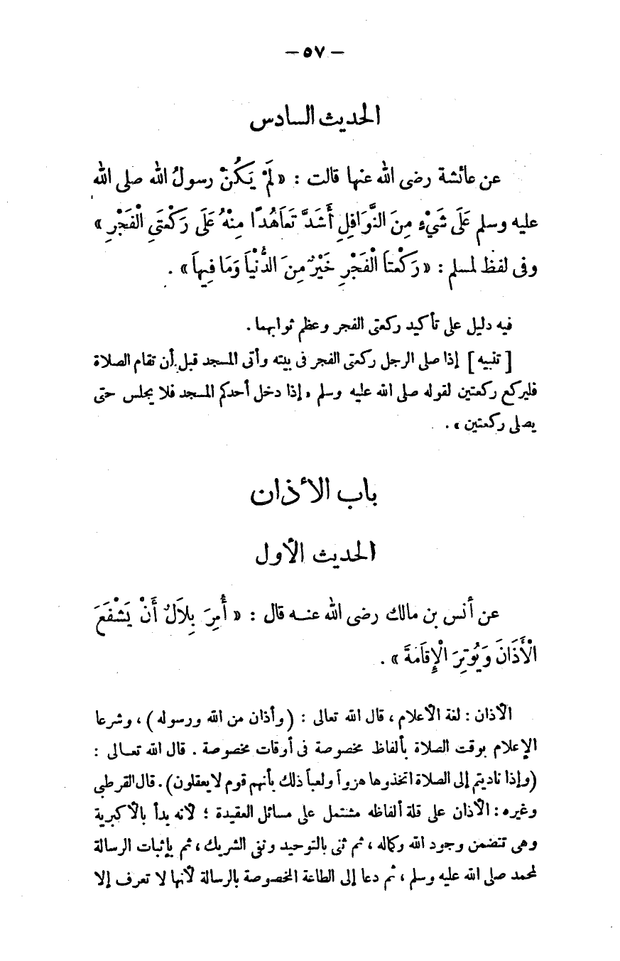 عن عائشة - رضي الله عنها - قالت: "لم يكن رسول الله - صلى الله عليه وسلم - على شيء من النوافل أشدَّ تعاهدًا منه على ركعتي الفجر"، وفي لفظ لمسلم: ((ركعتا الفجر خيرٌ من الدنيا وما فيها)) .