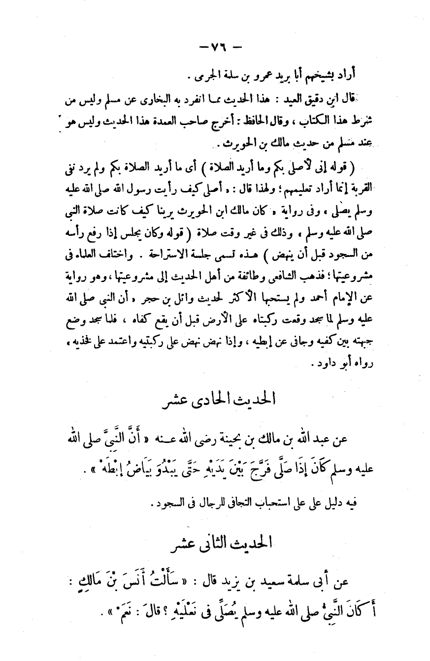 عن عبد الله بن مالك بن بحينة - رضي الله عنه -: أن النبي - صلى الله عليه وسلم - كان إذا صلى فرج بين يديه حتى يبدو بياض إبطه.