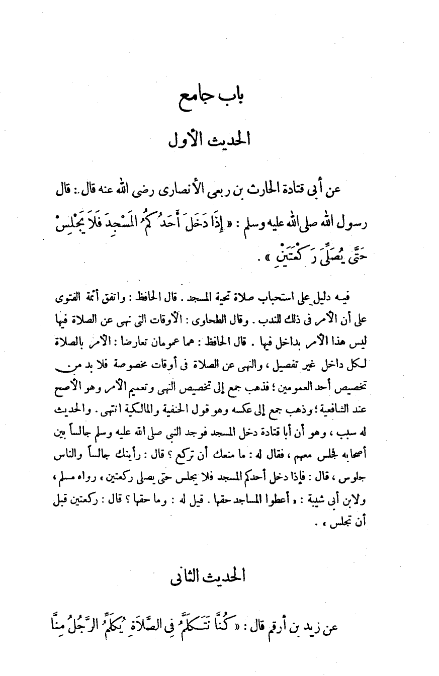 عن أبي قتادة الحارث بن ربعي الأنصاري - رضي الله عنه - قال: قال رسول الله - صلى الله عليه وسلم -: ((إذا دخل أحدكم المسجد فلا يجلس حتى يصلي ركعتين)) .