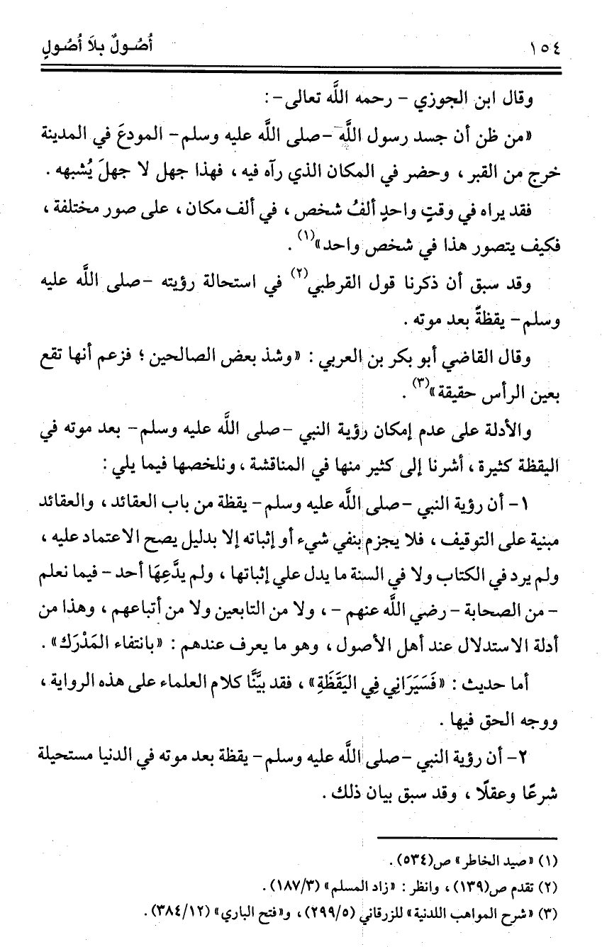 "من ظن أن جسد رسول الله -صلى الله عليه وسلم- المودعَ في المدينة خرج من القبر، وحضر في المكان الذي رآه فيه، فهذا جهل لا جهلَ يُشبهه.