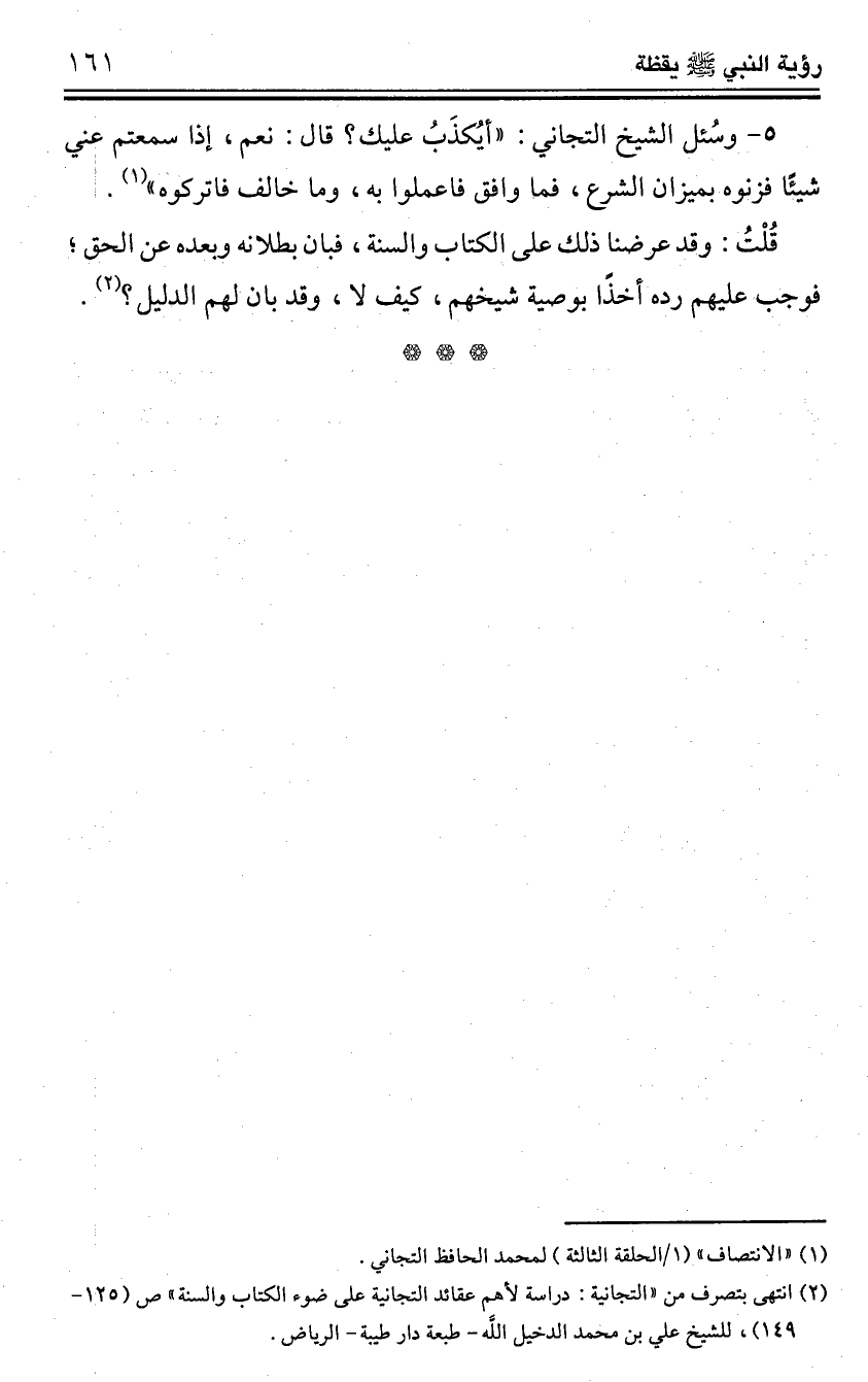(¬2) انتهى بتصرف من "التجانية: دراسة لأهم عقائد التجانية على ضوء الكتاب والسنة" ص (125 - 149)، للشيخ علي بن محمد الدخيل الله -طبعة دار طيبة- الرياض.