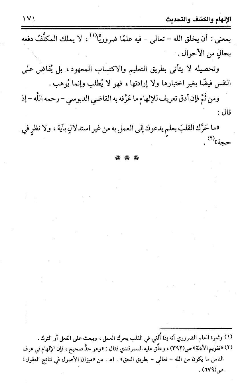 ومن ثَمَّ فإن أدق تعريف للإلهام ما عَرَّفه به القاضي الدبوسي -رحمه اللَّه- إذ قال: