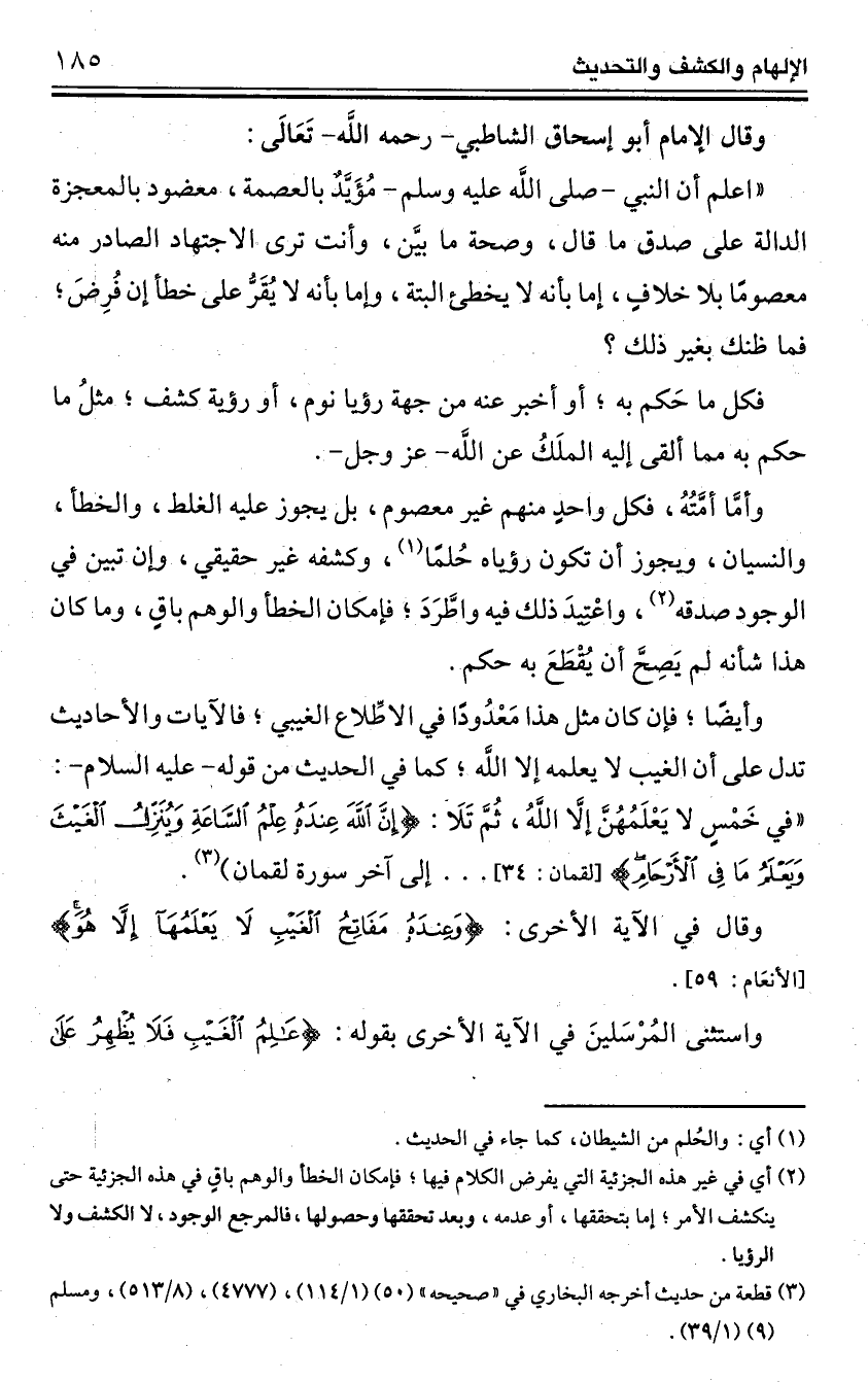 (¬2) أي في غير هذه الجزئية التي يفرض الكلام فيها؛ فإمكان الخطأ والوهم باقٍ في هذه الجزئية حتى ينكشف الأمر؛ إما بتحققها، أو عدمه، وبعد تحققها وحصولها، فالمرجع الوجود، لا الكشف ولا الرؤيا.