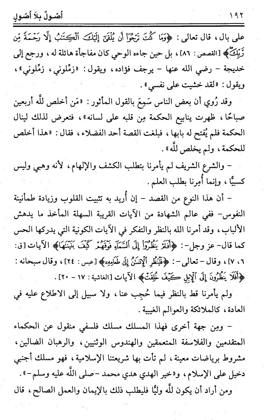 - ومِن جهة أخرى فهذا المسلك مسلك فلسفي منقول عن الحكماء المتقدمين والفلاسفة المتعمقين والهندوس الوثنيين، والرهبان الضالين، مشروط برياضات معينة، لم تأت بها شريعتنا الإسلامية، فهو مسلك أجنبي دخيل على الإسلام، و"خير الهدي هدي محمد -صلى اللَّه عليه وسلم-".