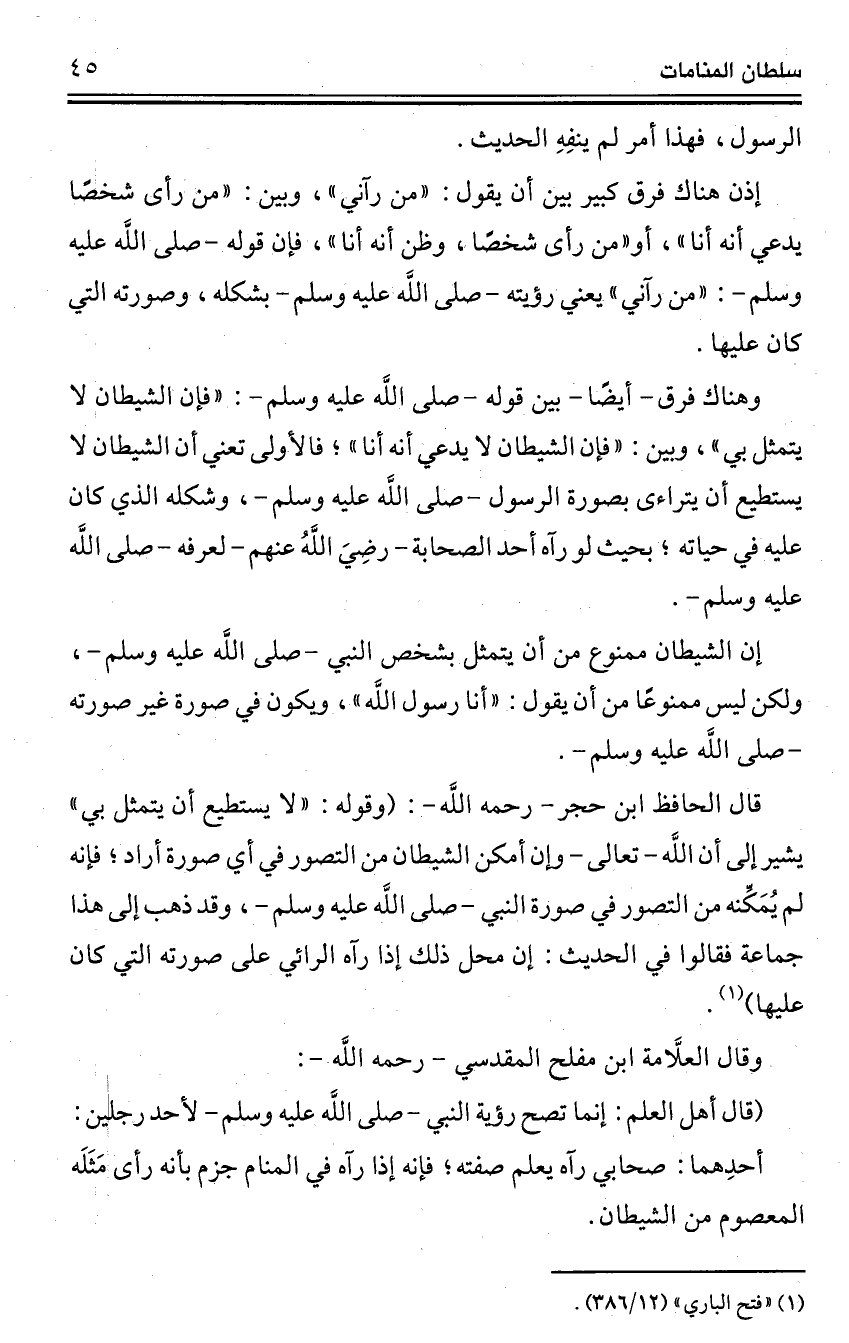 (قال أهل العلم: إنما تصح رؤية النبي -صلى اللَّه عليه وسلم- لأحد رجلين: أحدِهما: صحابي رآه يعلم صفته؛ فإنه إذا رآه في المنام جزم بأنه رأى مَثَلَه المعصوم من الشيطان.