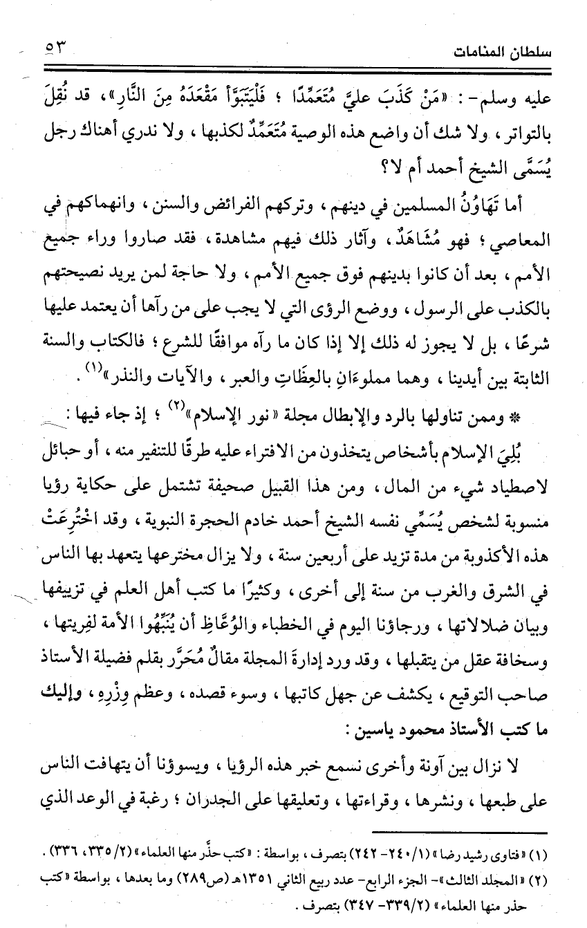 (¬2) "المجلد الثالث" -الجزء الرابع- عدد ربيع الثاني 1351 هـ (ص 289) وما بعدها، بواسطة "كتب حذر منها العلماء" (2/ 339 - 347) بتصرف.
