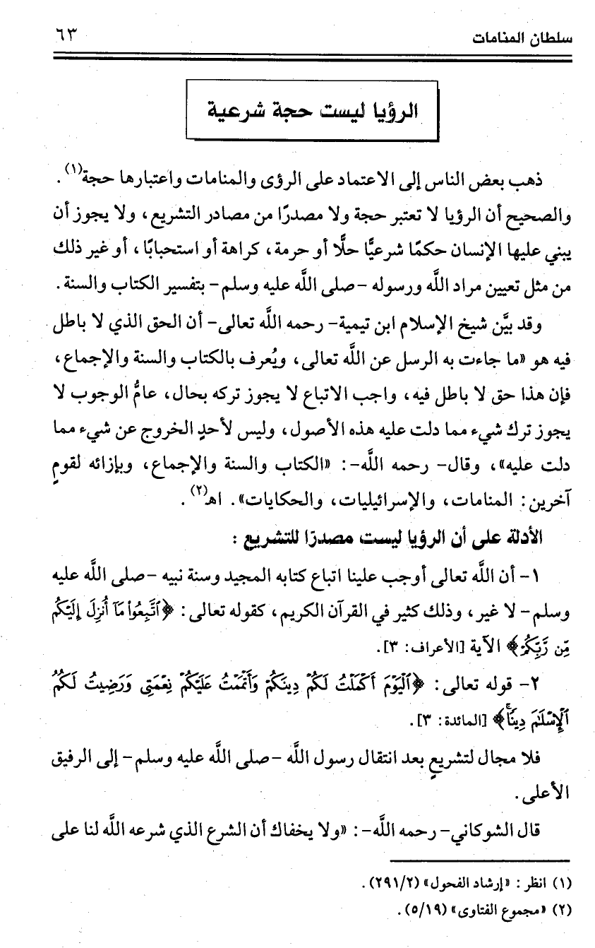 الأدلة على أن الرؤيا ليست، مصدرًا للتشريع: