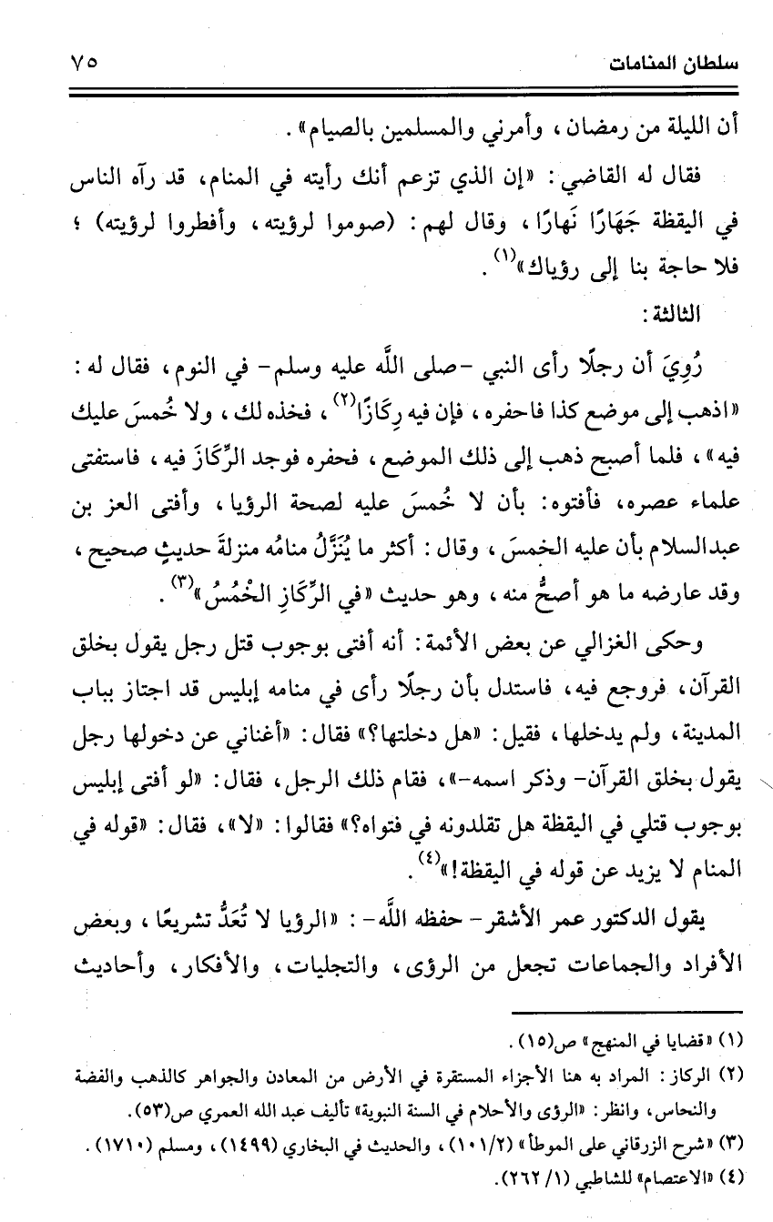 يقول الدكتور عمر الأشقر -حفظه اللَّه-: "الرؤيا لا تُعَدُّ تشريعًا، وبعض الأفراد والجماعات تجعل من الرؤى، والتجليات، والأفكار، وأحاديث